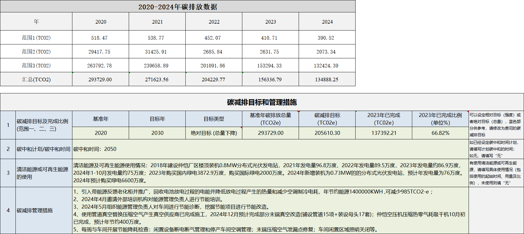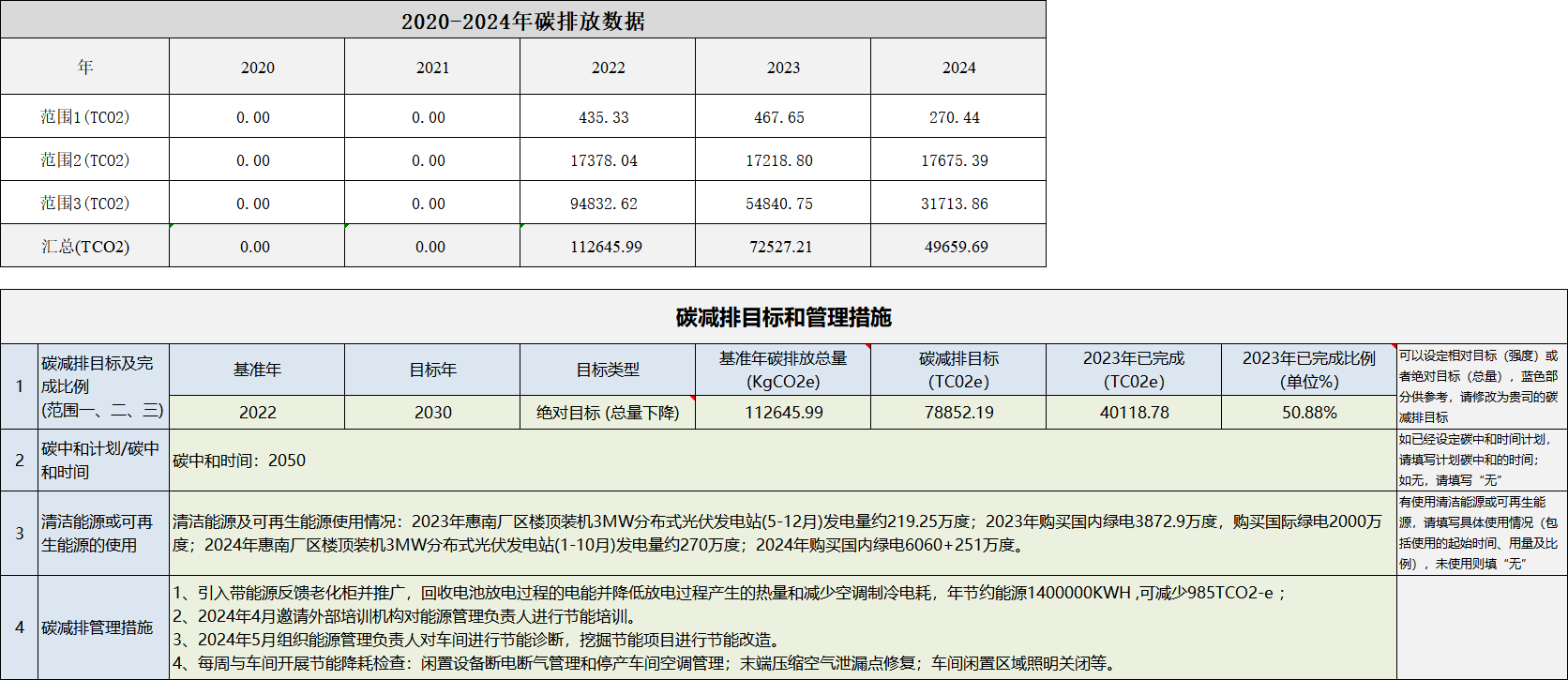 惠南廠區(qū)碳減排目標(biāo)和管理措施