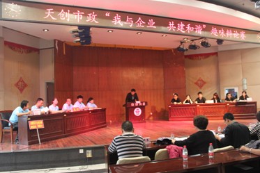 武漢天創(chuàng)市政建設(shè)工程有限公司組織舉辦“我與企業(yè) 共建和諧”趣味辯論賽,集團(tuán)公司陳穎書(shū)記、邢榮斌主任等領(lǐng)導(dǎo)到場(chǎng)觀看了比賽。